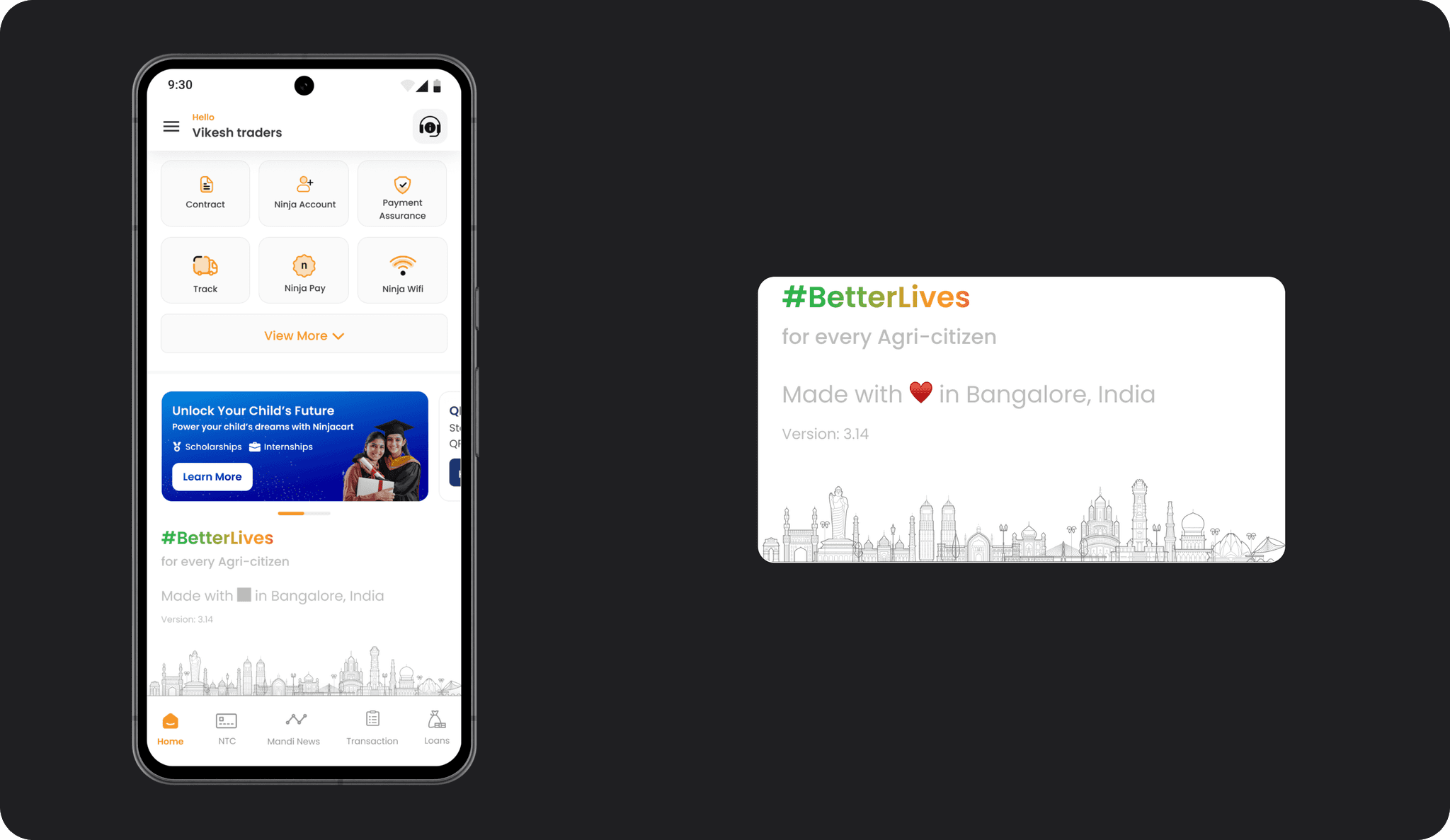 The footer reinforces Ninjacart's mission, “Better Lives,” with an image of an Indian monument, emphasizing the "Made in India" ethos. This addition strengthens the brand's vision and its connection to the local market.